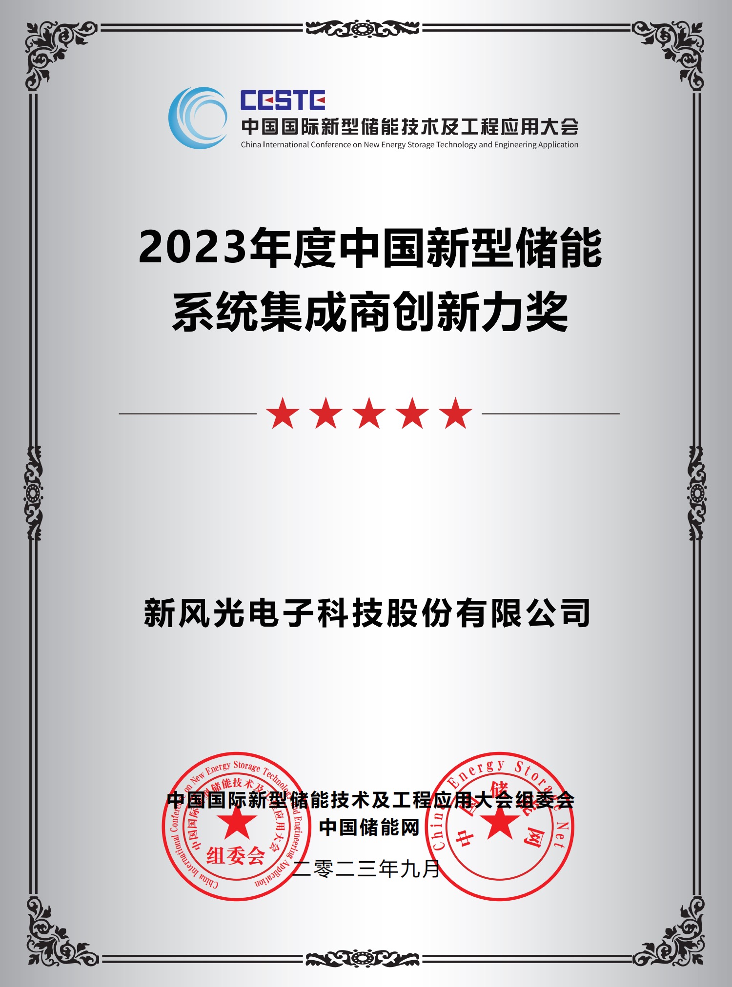 2023年度中國新型儲能系統集成商創新力獎