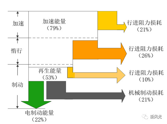 上圖中電制動能量的約40%被列車利用,若沒有能量回收利用裝置,則其余的制動能量都被車載電阻消耗掉。