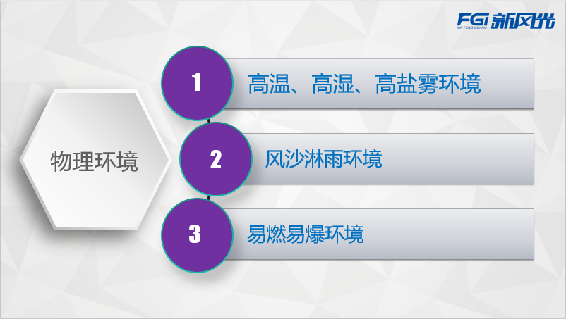 石工針對SVG多種嚴(yán)苛的應(yīng)用場景進(jìn)行了總結(jié)并將新風(fēng)光的解決方案向與會(huì)嘉賓做了詳盡的闡述。比較嚴(yán)苛的現(xiàn)場工況有物理環(huán)境和電氣環(huán)境,具體如下所示。