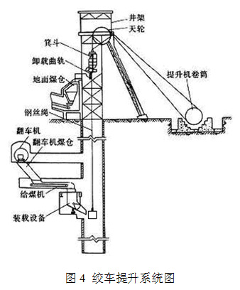 提煤容器為箕斗,提媒工藝如圖4所示: