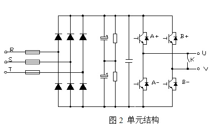 每個功率單元結構上完全一致,可以互換,其電路結構見圖3.2,為基本的交-直-交單相逆變電路,整流側為六支二極管實現三相全橋整流,通過對IGBT逆變橋進行正弦PWM控制,每個個功率單元完全一樣,可以互換,這不但調試、維修方便,而且備份也十分經濟,假如某一單元發生故障,該單元的輸出端能自動短路而整機可以暫時降額工作,直到緩慢停止運行。