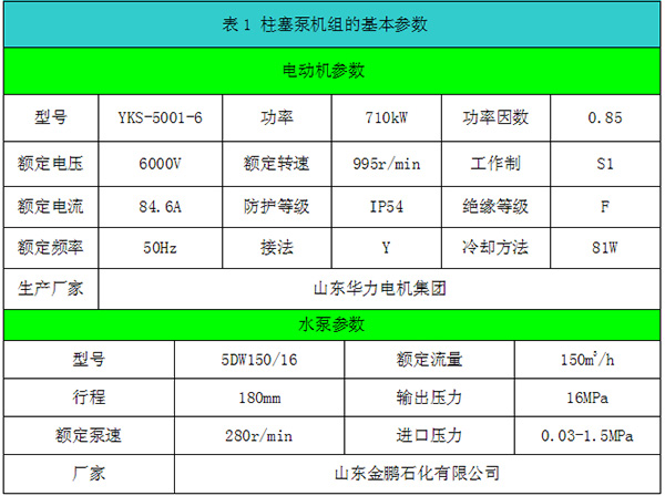 5#、7#柱塞泵機組的基本參數如表1所示: