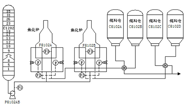 (1)對兩臺輻射進料泵(P8102AB)進行改造,采用一拖一手動控制。