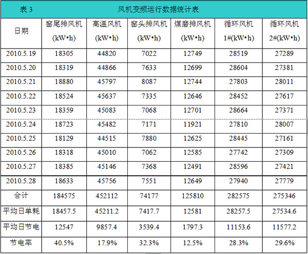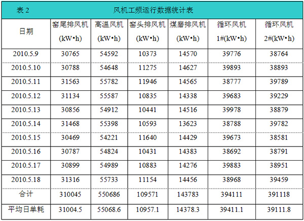 7.3水泥生產風機變頻運行數據統計表