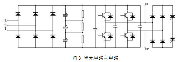 風光高壓變頻器,采用若干個低壓逆變器功率單元串聯的方式實現直接高壓輸出,單元電路模塊化設計,維護簡單,互換性好,高壓主回路與控制器之間為光纖連接,強弱電隔離,安全可靠,該10kV高壓變頻器,變壓器有24組付邊繞組,分為8個功率單元∕相,三相共24個單元,采用36脈沖整流,輸入端的諧波成分低于國標規定,高壓變頻器系統結構如圖2所示,單元電路的主電路如圖3所示。
