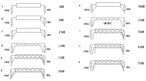 從圖3衰減情況看,A-F的屏蔽效果不好,若必須采用兩端接地,則應采用C或F的形式。G-K的屏蔽效果要好的多,但K一般不建議選用,因為在屏蔽層上的任何噪聲電流和電壓都可作用到信號線上。100Ω(始端)直接接地是不合適的,因為兩端接地為地環路提供了分流,使磁場屏蔽性能下降。
