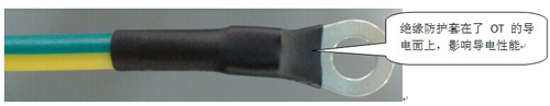 關鍵質量點:螺栓壓接式的接線鼻的防護部位不可固定到壓接面上。