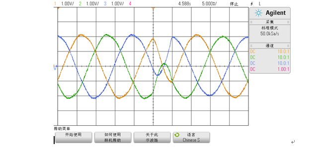 FGSVG系列產品采用進口電力電子模塊作為主功率器件,多個DSP和FPGA組成強大的控制系統。在控制算法上采用瞬時無功理論,實現對系統/負載無功功率的快速準確的檢測。為了得到更快的響應速度和更高的性能采用電流直接控制技術和載波移相技術,實現并網無功電流的快速控制和更優的并網電流波形,如圖4所示。FGSVG能夠快速連續地提供容性或者感性無功功率,實現適當的電壓和無功功率控制,保障電力系統穩定、優質地運行。