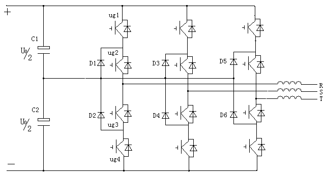 當裝置功率大時,需要這樣幾個主電路并聯,并聯時需考慮均流與環流及其相位問題,同時采用二極管鉗位的三電平電路需考慮直流端電容中點電位不平衡問題,在軟件PWM波生成電路中尤其注重此點。